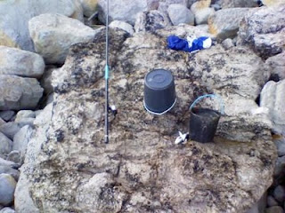Aproveitando uma folga fui visitar a familia que está de férias e como de costume fiz-me acompanhar pelo material de pesca engodo e isco com o intuito de aproveitar a maré de manhã,mas como o estado do mar não é compativel com a folga bem procurei um cantinho para brincar um pouco mas a unica coisa que restou foi a carga fisica de descer e subir 3 quebradas pois de peixe só senti o cheiro da sardinha de engodo